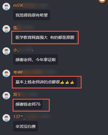 網(wǎng)校學員考后說道:醫(yī)學教育網(wǎng)真強大 有的都是原題!評價看下圖↓↓
