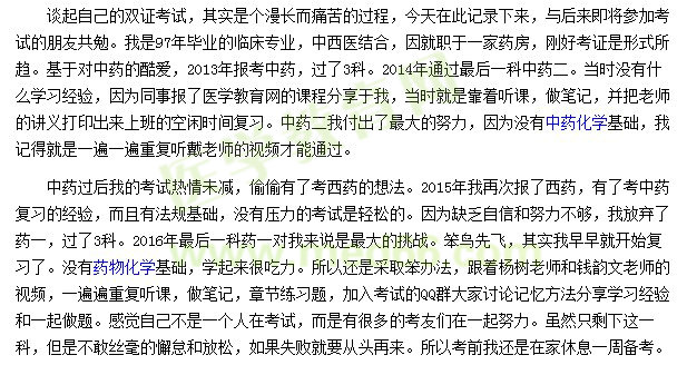 2016年我的執(zhí)業(yè)藥師之路大型有獎(jiǎng)?wù)魑幕顒?dòng)火熱進(jìn)行中,醫(yī)學(xué)教育網(wǎng)學(xué)員積極參與,為我們帶來(lái)了很多精彩的文章,醫(yī)學(xué)教育網(wǎng)執(zhí)業(yè)藥師學(xué)員根據(jù)自己參加2016年執(zhí)業(yè)藥師的經(jīng)歷寫(xiě)了這篇:《2016年我的執(zhí)業(yè)藥師之路》,讓我們一起來(lái)見(jiàn)證他的執(zhí)業(yè)藥師之路吧!