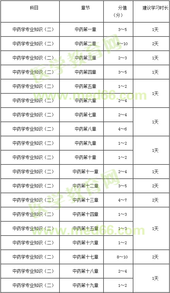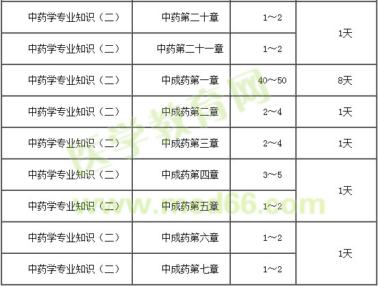 建議每天學(xué)習(xí)3~4小時(shí),中藥學(xué)綜合知識(shí)與技能總復(fù)習(xí)時(shí)長(zhǎng)16天。