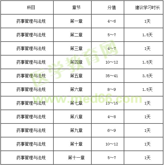 建議每天學(xué)習(xí)3~4小時(shí),藥事管理與法規(guī)總復(fù)習(xí)時(shí)長(zhǎng)15天。