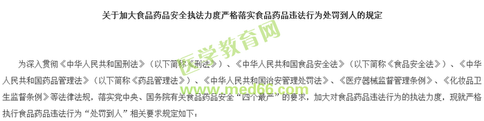 2018年年初,食品藥品監(jiān)管總局公安部印發(fā)關(guān)于加大食品藥品安全執(zhí)法力度嚴(yán)格落實(shí)食品藥品違法行為處罰到人的規(guī)定的通知,其中指出個(gè)人從事食品藥品違法行為的,依法追究個(gè)人法律責(zé)任。單位從事食品藥品違法行為的,除對(duì)單位進(jìn)行處罰外,還要依法追究單位直接負(fù)責(zé)的主管人員和其他直接責(zé)任人員責(zé)任!