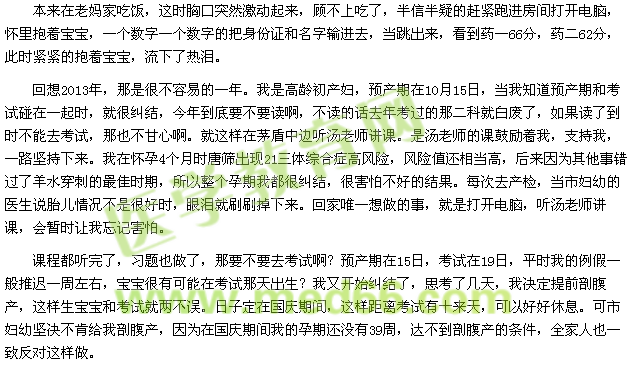 19日早上我準時出現(xiàn)在考場,頭戴帽子,裹著大衣,步態(tài)緩慢,同學(xué)們都投來了好奇的眼光,因為那天風(fēng)和日麗,還有一點熱。從10月1日到考試,我都沒有翻書和打開過電腦,因為產(chǎn)前焦慮和產(chǎn)后疲勞。憑著聽課的印象,想著劉翔和崔永元,在腰背酸痛中,我堅持了藥一和藥二的2場考試。