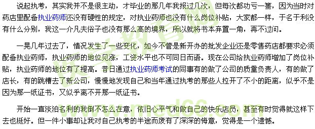 2013年醫(yī)學(xué)教育網(wǎng)舉行了大型征文活動——我的醫(yī)考之路,以下是執(zhí)業(yè)藥師學(xué)員的征文,讓我們一起來見證她的醫(yī)考之路吧!