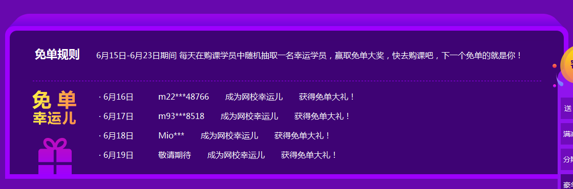活動(dòng)期間,每天都會(huì)公布的免單名單!