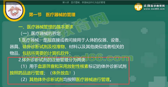 試題:10.醫(yī)療器械是直接或者間接作用于人體的儀器、設(shè)備、器具,體外診斷試劑及校準(zhǔn)物、材料以及其他類似或相關(guān)的物品,關(guān)于醫(yī)療器械管理要求的說法,錯(cuò)誤的是:體外診斷試劑按照《體外診斷試劑注冊管理辦法》辦理醫(yī)療器械產(chǎn)品備案或者注冊