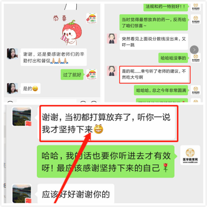不管昨夜經(jīng)歷了怎樣的挫折,早晨醒來陽光總是如約而至;只要盡力拼搏,總會(huì)有不期而遇的好運(yùn),面授班的老師們見證了你們這些日子的努力!想起備考的日日夜夜,終于為自己交上一份滿意的答卷。當(dāng)我們收到各位面授學(xué)員的捷報(bào)時(shí),醫(yī)學(xué)教育網(wǎng)老師覺得一切都是值得的!你們圓夢(mèng)的樣子很美!