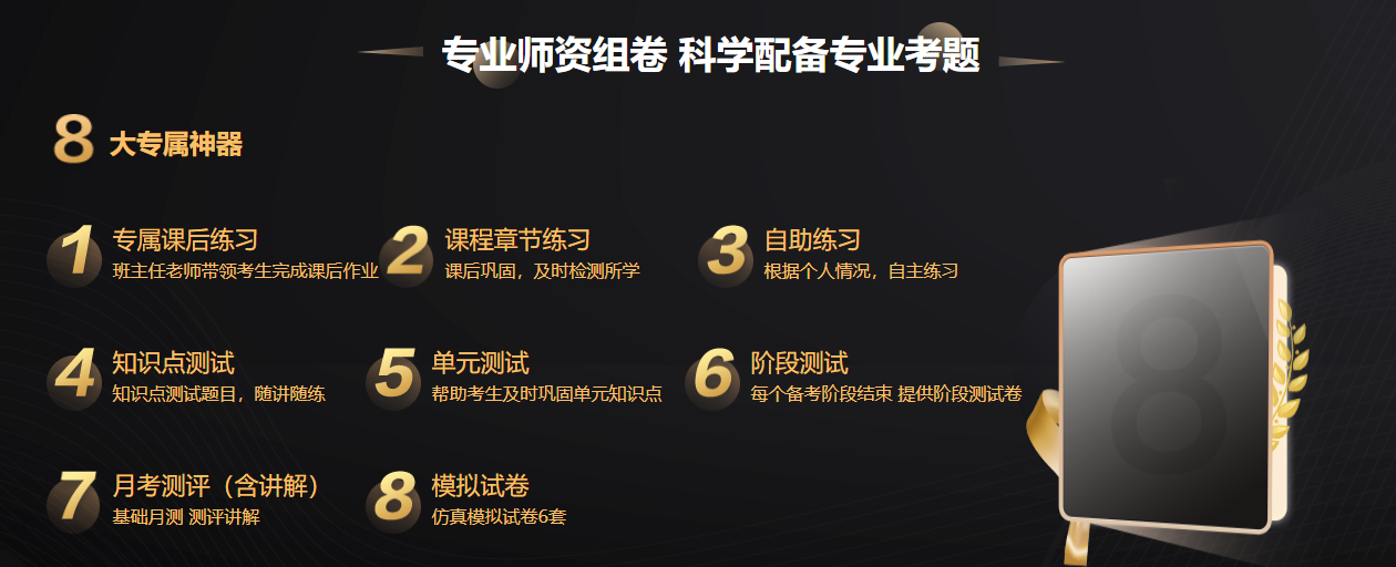 備考最重要的不僅是掌握知識點,還要會運用到做題中去,VIP簽約特訓(xùn)營具有非常全面的題庫材料,根據(jù)個人情況,自主練習(xí)!讓您熟練的掌握每個知識點!