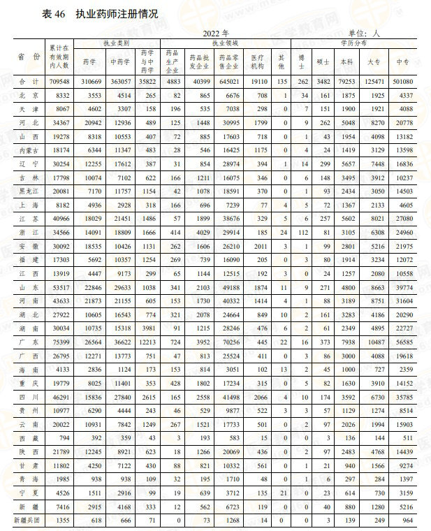 4月19日,國家藥監(jiān)局還發(fā)布了《藥品監(jiān)督管理統(tǒng)計年度數(shù)據(jù)(2022年)》,詳細匯總整理了執(zhí)業(yè)藥師注冊情況,執(zhí)業(yè)藥師所在的執(zhí)業(yè)領(lǐng)域都有明確的數(shù)據(jù),感興趣的考生可以點擊查看大圖,其中醫(yī)療機構(gòu)領(lǐng)域占其中很大一部分!