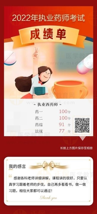 千呼萬喚始出來,2022年執(zhí)業(yè)藥師補(bǔ)考成績終于公布了,來自全國各地的考生紛紛向網(wǎng)校報(bào)喜,小編整理了一些學(xué)員的反饋,一起感受她們的喜悅吧!希望也能夠與你分享你的喜悅,快來一塊曬成績!
