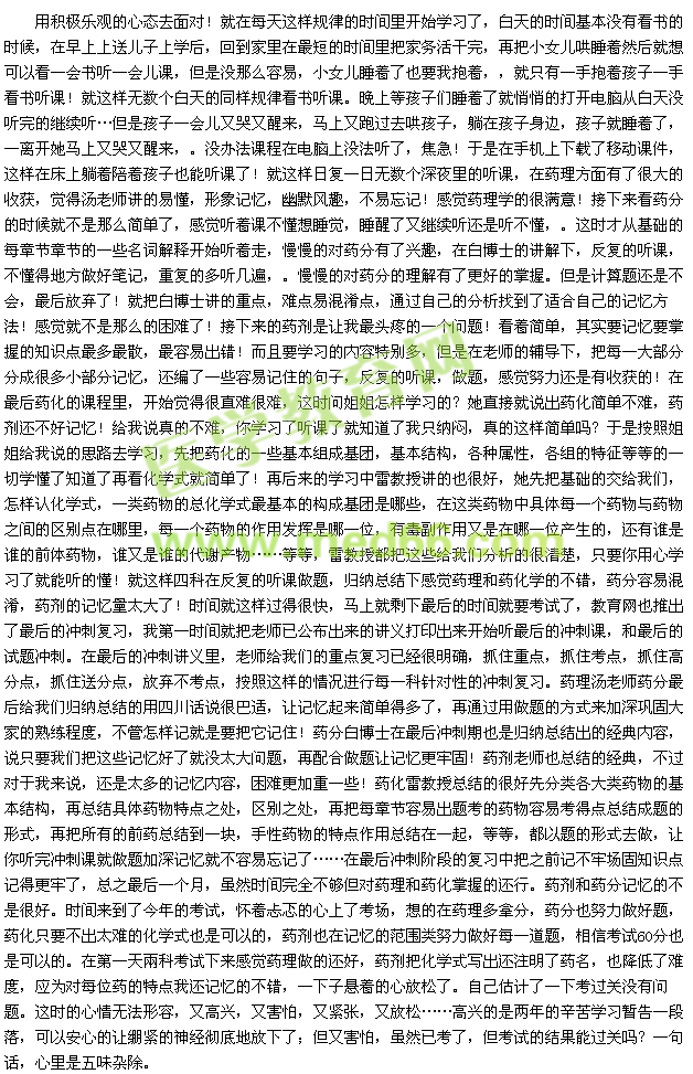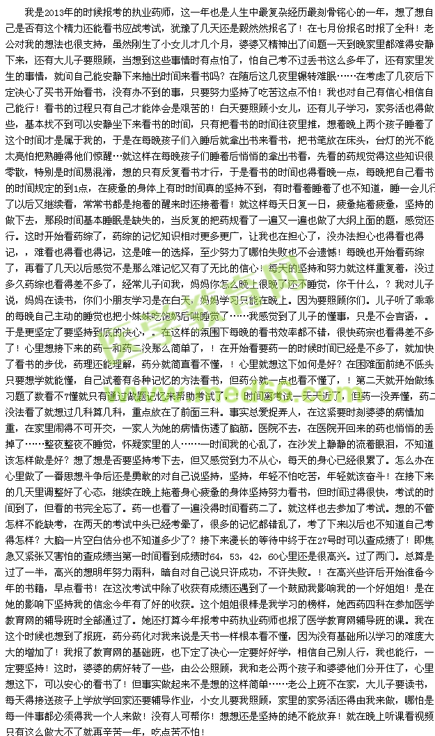 我的2014執(zhí)業(yè)藥師之路--一份付出一份收獲(學(xué)員piaomiao***)