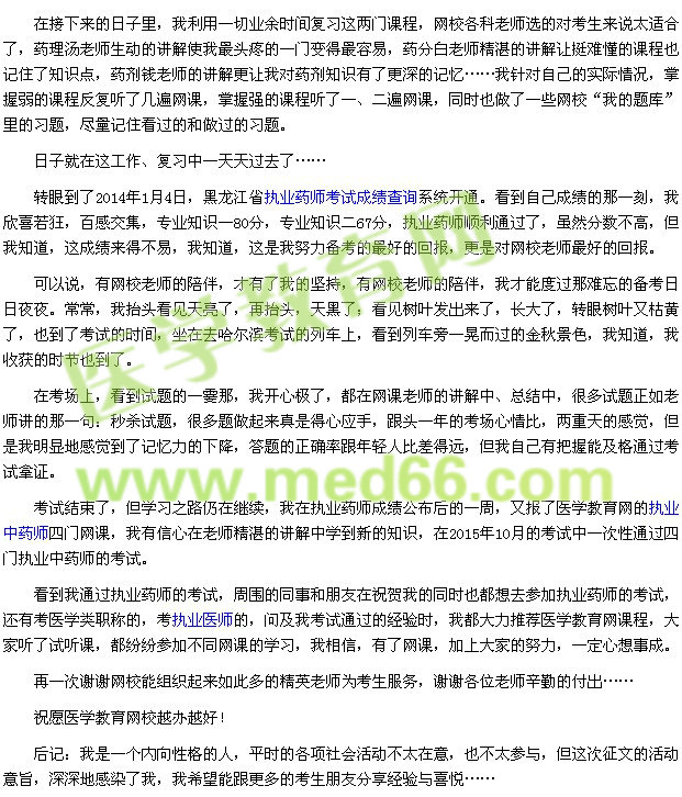 我的執(zhí)業(yè)藥師之路-有你,才有這片天(學(xué)員zhangfe***)