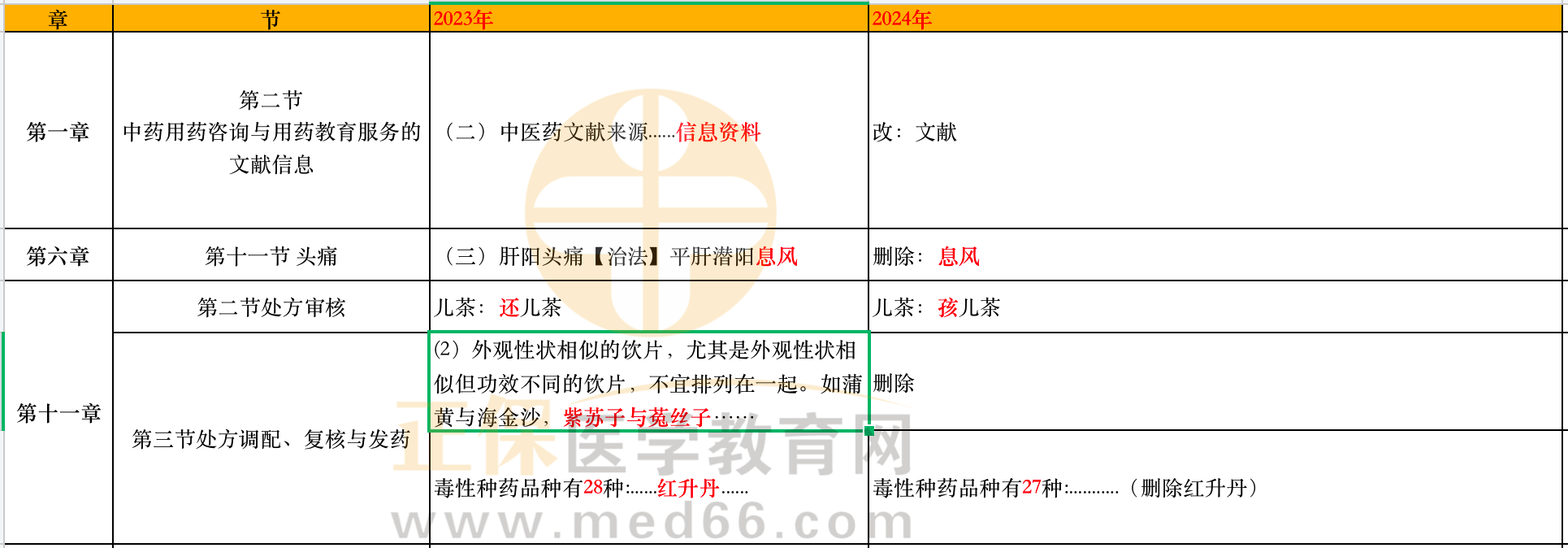 2024年執(zhí)業(yè)藥師《中藥學綜合知識與技能》教材變動情況來了!相較于2023年,《中藥學綜合知識與技能》教材都有哪些變動呢?醫(yī)學教育網(wǎng)老師特為執(zhí)業(yè)藥師考生詳細整理了變動情況,幫助大家進行梳理~快來看看吧!教材解讀直播>