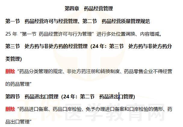 2025年執(zhí)業(yè)藥師《藥事管理與法規(guī)》教材變動(dòng)分析