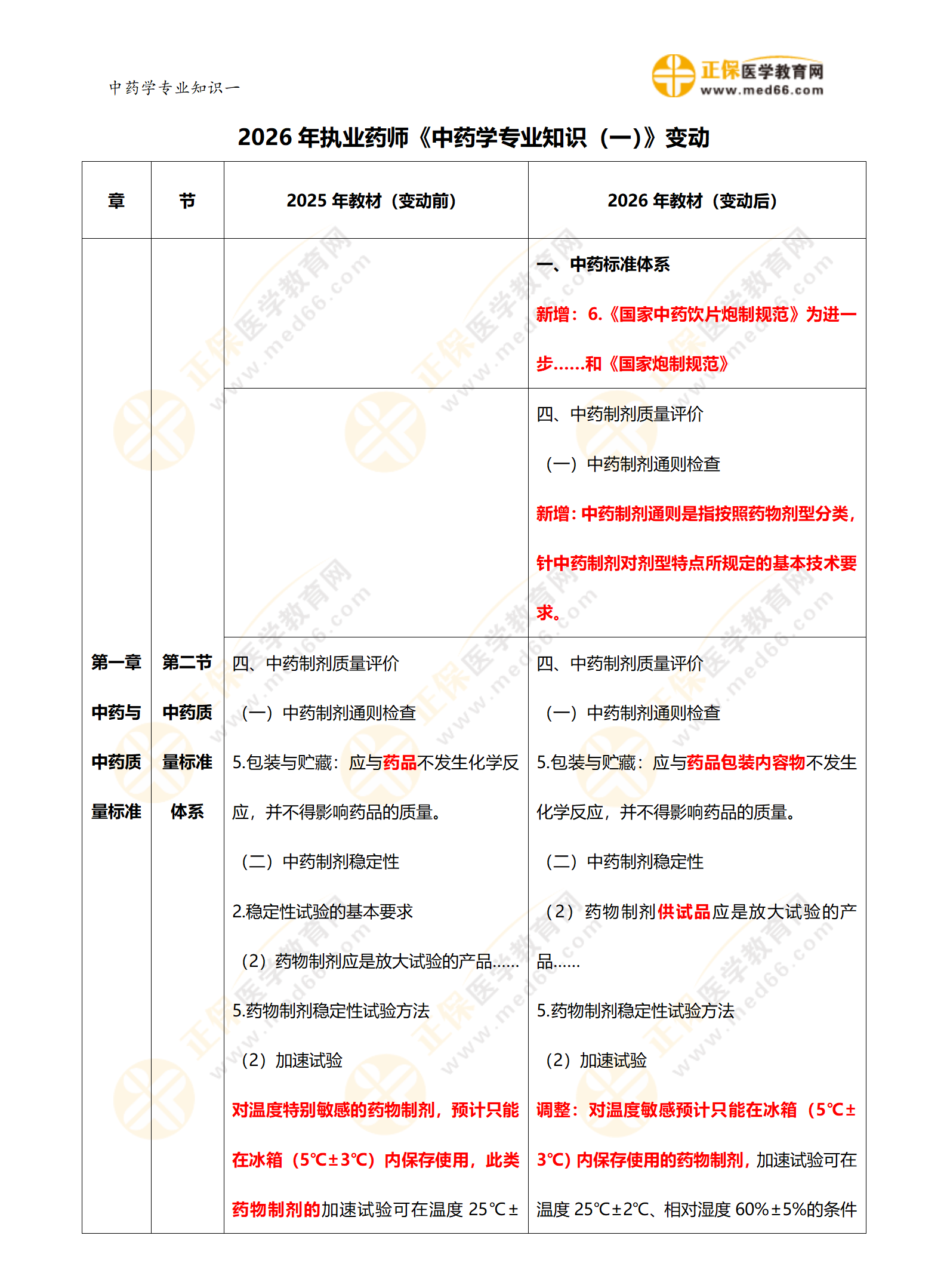 2026年執(zhí)業(yè)藥師《中藥學(xué)專業(yè)知識(shí)一》教材變動(dòng)分析!