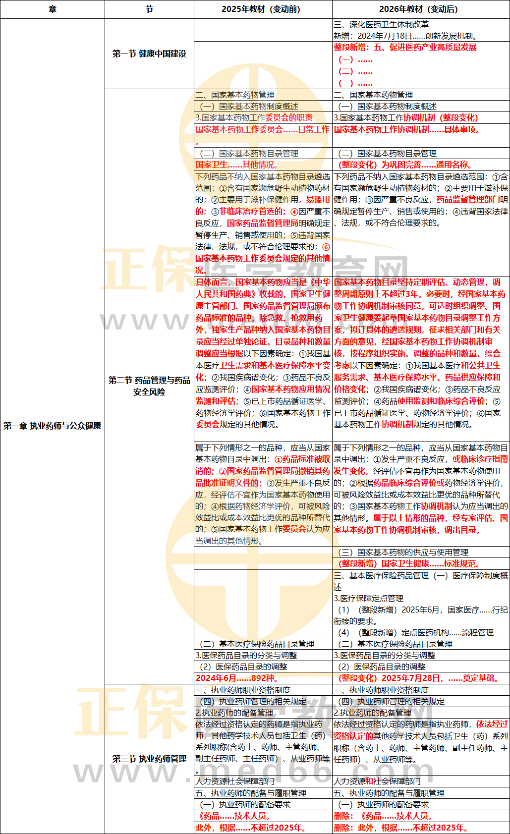 《藥事管理與法規(guī)》2026年最新出爐的教材來啦![醫(yī)學(xué)教育網(wǎng)]將教材與2025年教材進(jìn)行了認(rèn)真細(xì)致地比對,整體變動率約20%。