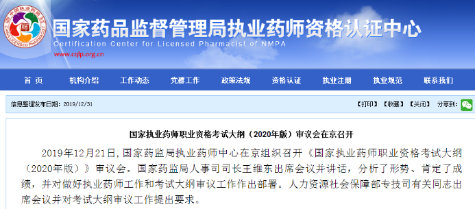 2019年12月31日,國家藥品監(jiān)督管理局執(zhí)業(yè)藥師資格認證中心發(fā)布《國家執(zhí)業(yè)藥師職業(yè)資格考試大綱(2020年版)審議會在京召開》!