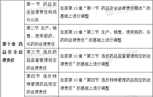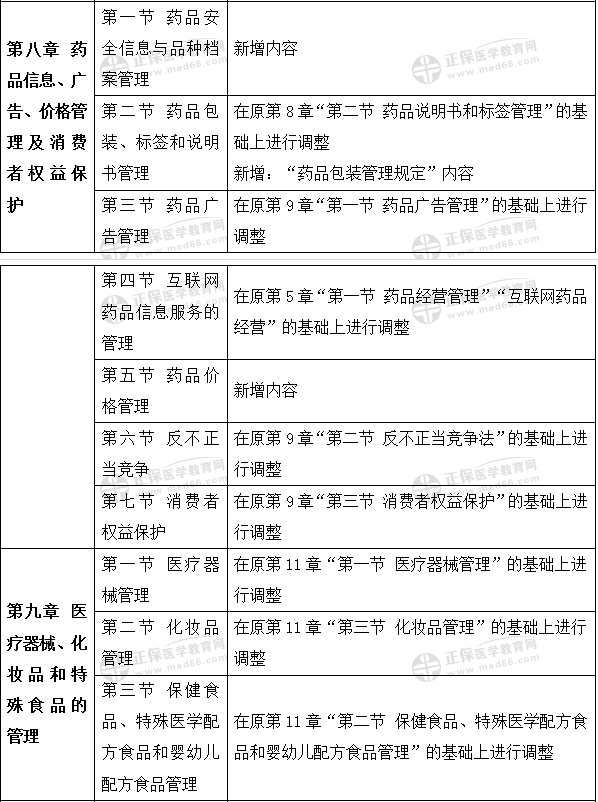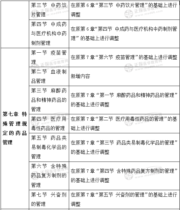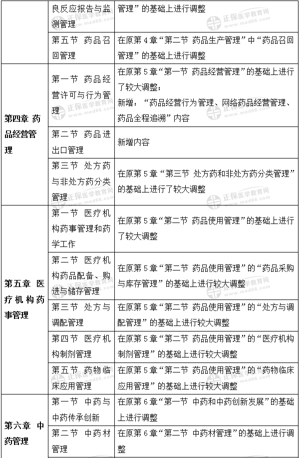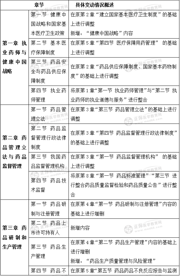 《藥事管理與法規(guī)》教材整體變化很大,具體變化情況如下: