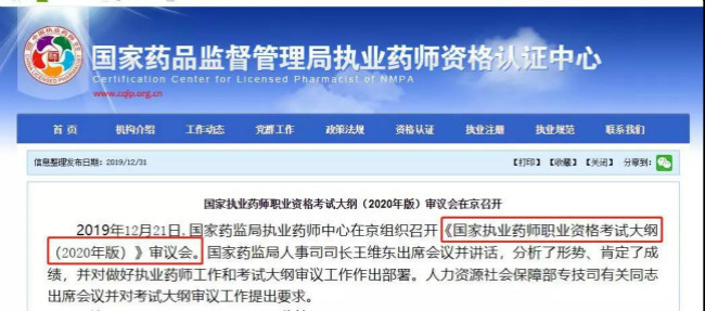 2019年12月21日,國家藥監(jiān)局執(zhí)業(yè)藥師中心召開了《國家執(zhí)業(yè)藥師職業(yè)資格考試大綱(2020年版)》審議會。會議上,主要是針對執(zhí)業(yè)藥師考試大綱和工作提出要求,并通過通過《國家執(zhí)業(yè)藥師職業(yè)資格考試大綱(2020年版)》(審議稿)。