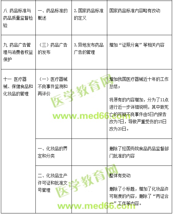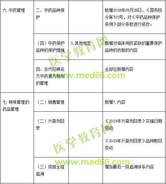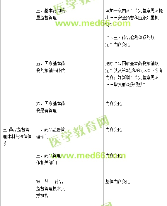 以下是2019年《藥事管理與法規(guī)》教材變動(dòng)表: