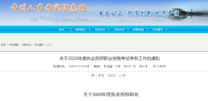 貴州省人事考試網(wǎng)發(fā)布通知:2020年貴州省執(zhí)業(yè)藥師考試報(bào)名時(shí)間隨之正式確定!報(bào)名時(shí)間:8月7-8月17日!網(wǎng)上繳費(fèi):8月7日-8月19日!