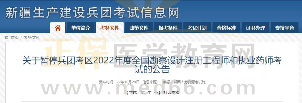 關(guān)于暫停兵團(tuán)考區(qū)2022年度全國執(zhí)業(yè)藥師考試的公告