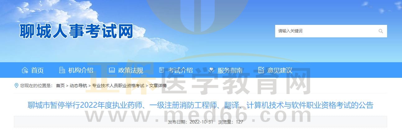 山東聊城人事考試網發(fā)布了《聊城市暫停舉行2022年度執(zhí)業(yè)藥師、一級注冊消防工程師、翻譯、計算機技術與軟件職業(yè)資格考試的公告》,具體通知內容如下: