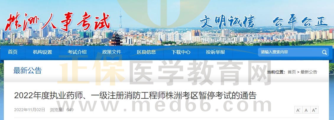 為全力做好新冠疫情防控工作,根據(jù)疫情防控工作需要,結(jié)合當(dāng)前我市疫情形勢,經(jīng)研究,決定株洲考區(qū)暫停原定于11月5日、6日舉行的2022年度執(zhí)業(yè)藥師、一級注冊消防工程師考試。