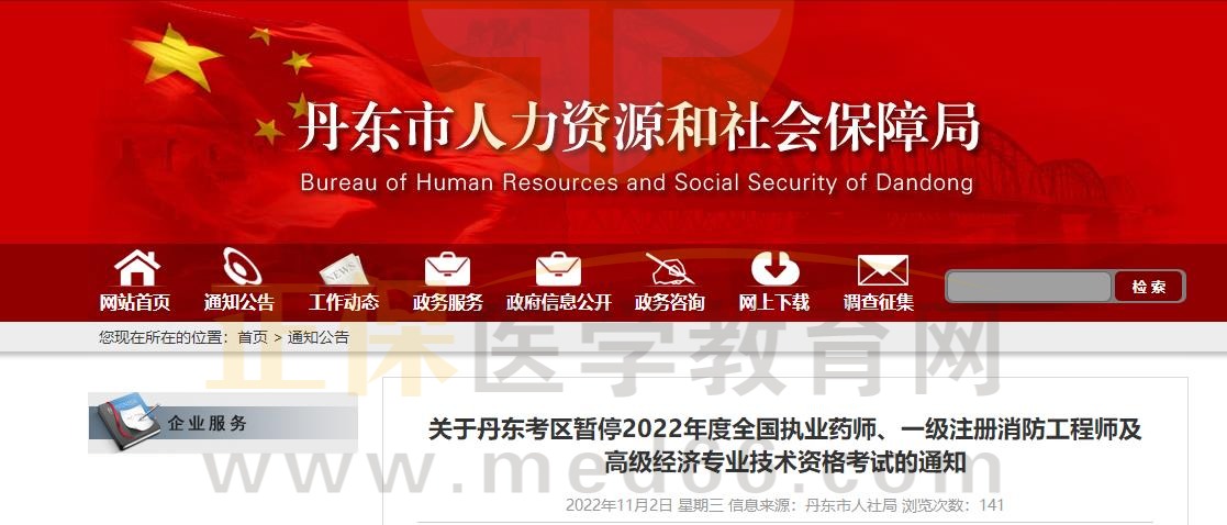 關(guān)于遼寧丹東考區(qū)暫停2022年度全國(guó)執(zhí)業(yè)藥師資格考試的通知