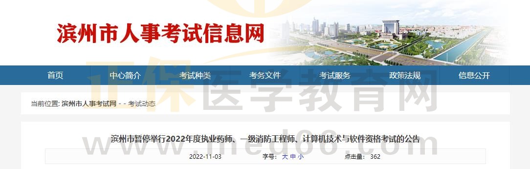 山東濱州市暫停舉行2022年度執(zhí)業(yè)藥師資格考試的公告