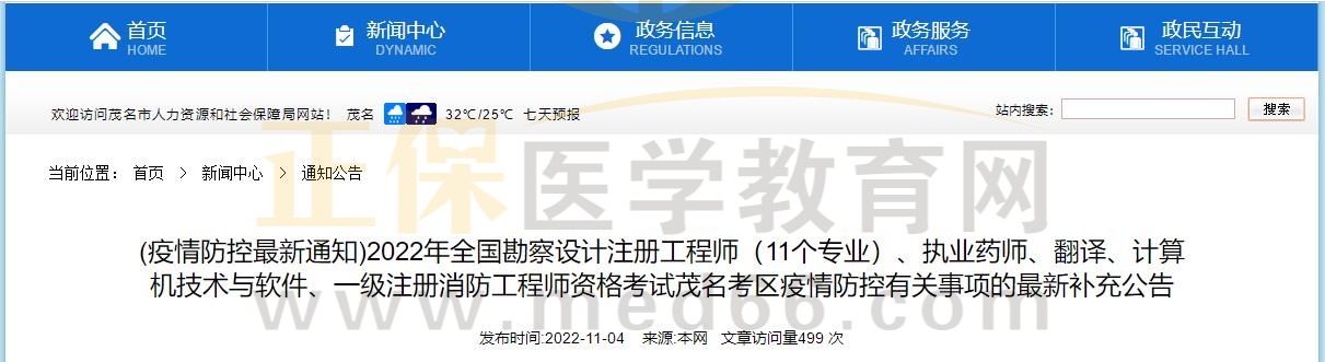 (疫情防控最新通知)2022年執(zhí)業(yè)藥師資格考試茂名考區(qū)疫情防控有關事項的最新補充公告