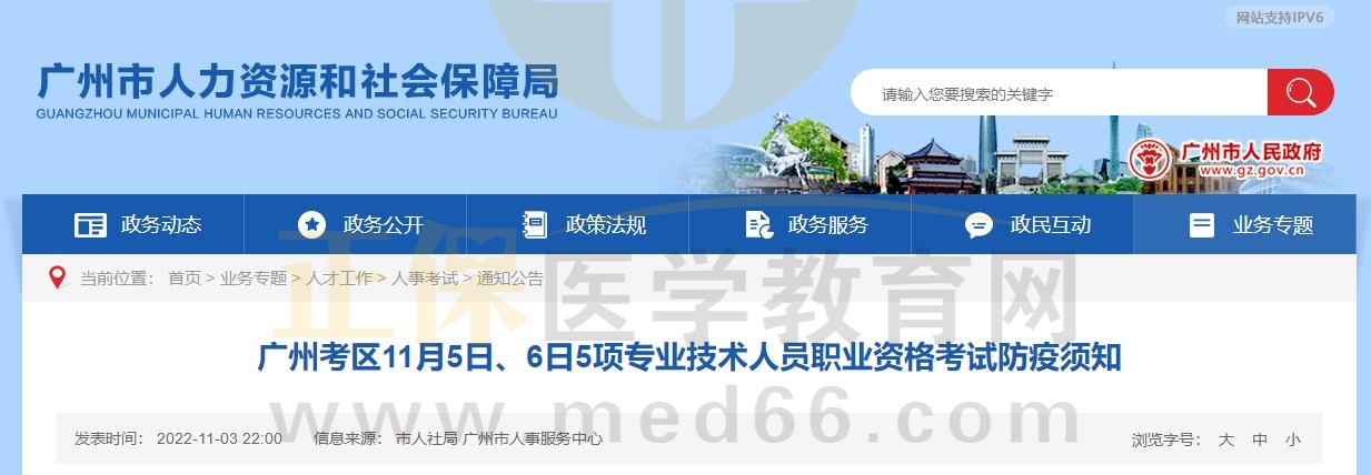 廣東廣州人力資源和社會保障局發(fā)布了《廣州考區(qū)11月5日、6日5項專業(yè)技術(shù)人員職業(yè)資格考試防疫須知》,具體通知內(nèi)容如下:
