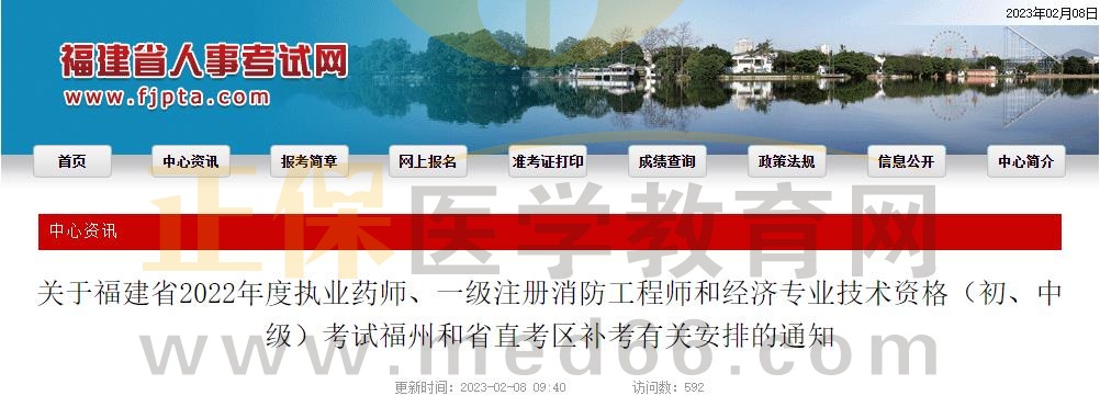 根據(jù)人社部人事考試中心有關文件精神,現(xiàn)將福建省2022年度執(zhí)業(yè)藥師、一級注冊消防工程師和經(jīng)濟專業(yè)技術資格(初、中級)考試福州和省直考區(qū)補考有關事項通知如下: