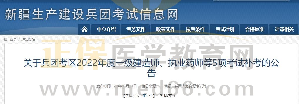 兵團考區(qū)關(guān)于2022年度執(zhí)業(yè)藥師考試補考的公告
