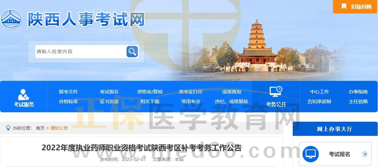 2022年度執(zhí)業(yè)藥師職業(yè)資格考試陜西考區(qū)補(bǔ)考考務(wù)工作公告