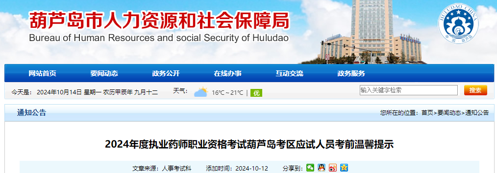 【遼寧葫蘆島】2024年執(zhí)業(yè)藥師考試應(yīng)試人員考前溫馨提示