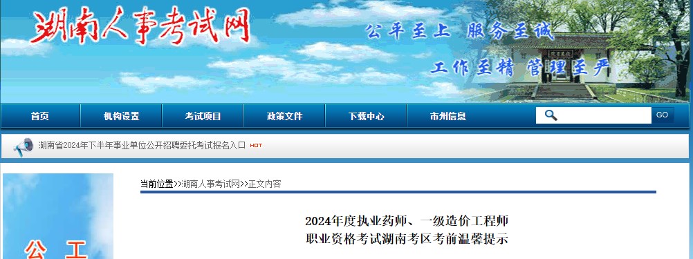 【湖南】2024年度執(zhí)業(yè)藥師、一級造價工程師職業(yè)資格考試湖南考區(qū)考前溫馨提示