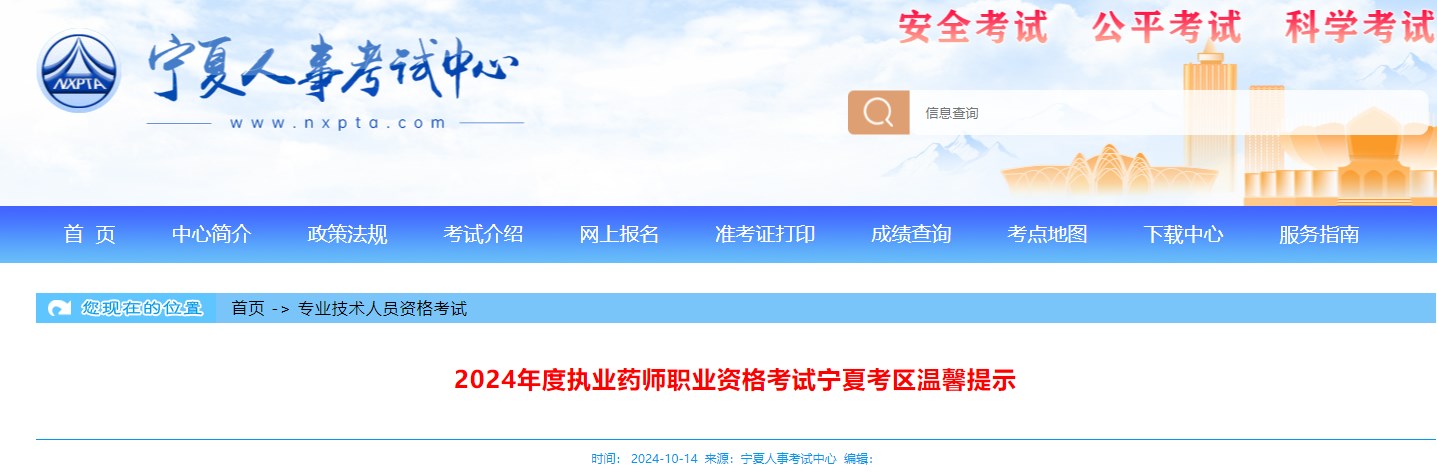 【寧夏】2024年度執(zhí)業(yè)藥師職業(yè)資格考試寧夏考區(qū)溫馨提示