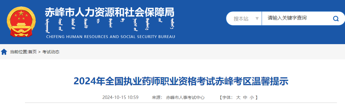 【內(nèi)蒙古赤峰】2024年全國(guó)執(zhí)業(yè)藥師職業(yè)資格考試溫馨提示