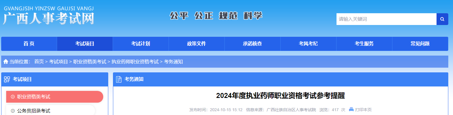 【廣西】2024年度執(zhí)業(yè)藥師職業(yè)資格考試參考提醒