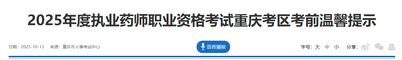 【重慶】2025年度執(zhí)業(yè)藥師職業(yè)資格考試重慶考區(qū)考前溫馨提示
