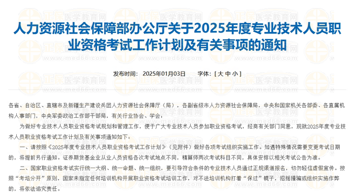 《人力資源社會(huì)保障部辦公廳關(guān)于2025年度專業(yè)技術(shù)人員職業(yè)資格考試工作計(jì)劃及有關(guān)事項(xiàng)的通知 》
