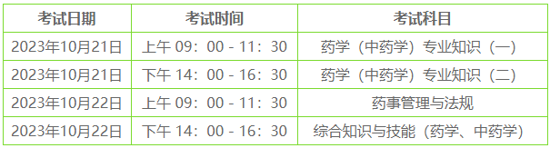 答:2023年執(zhí)業(yè)藥師考試時(shí)間為10月21日-22日。