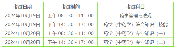 2024年執(zhí)業(yè)藥師考試定于10月19日至20日進行。具體科目安排如下:
