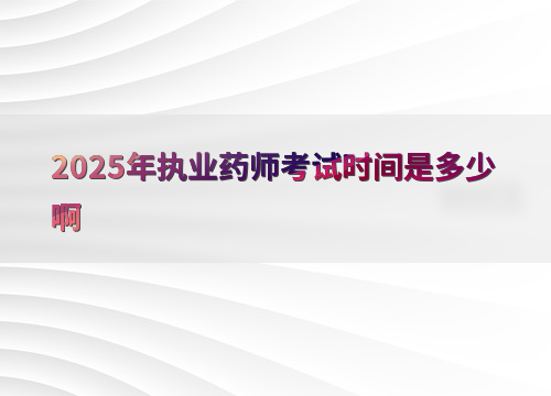2025年執(zhí)業(yè)藥師考試時間是多少啊