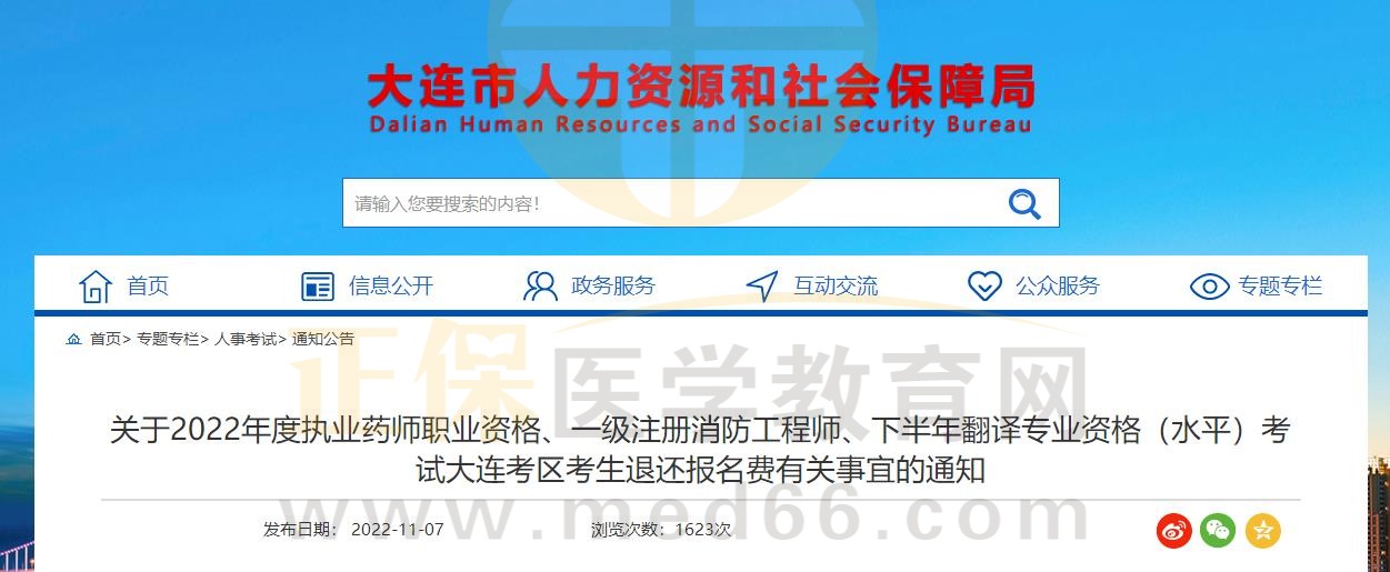 關(guān)于2022年度執(zhí)業(yè)藥師職業(yè)資格大連考區(qū)考生退還報名費有關(guān)事宜的通知
