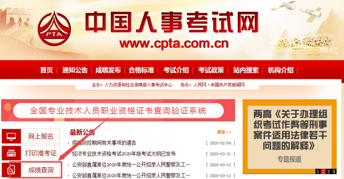 2019年執(zhí)業(yè)藥師成績查詢官方網(wǎng)站:中國人事考試網(wǎng)