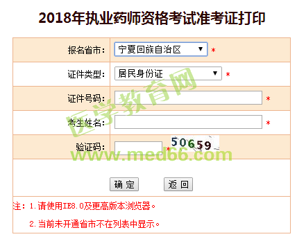 2018年寧夏自治區(qū)執(zhí)業(yè)藥師準(zhǔn)考證打印入口: