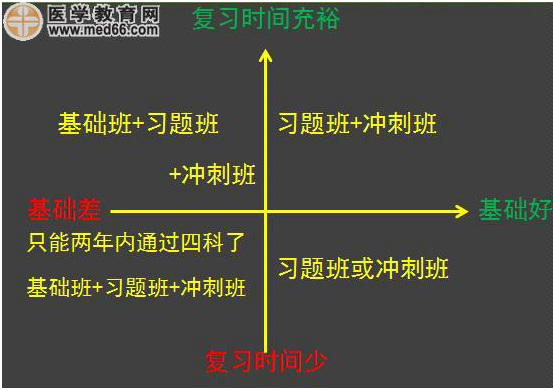 當(dāng)然,對(duì)于部分藥學(xué)專業(yè)出身的“老司機(jī)”們,就不需要漸進(jìn)式復(fù)習(xí)了,在聽完應(yīng)試技巧班后,可以根據(jù)自己的情況,學(xué)習(xí)習(xí)題班或者沖刺班,具體見坐標(biāo)圖: