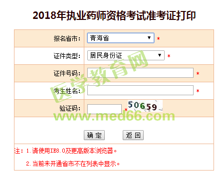 2018年青海省執(zhí)業(yè)藥師準考證打印入口: