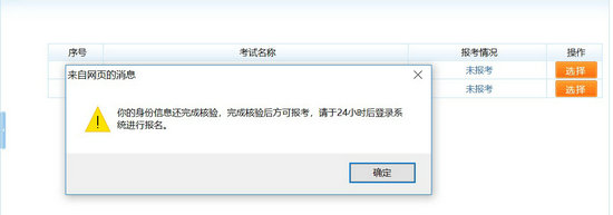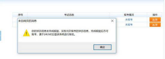 若注冊信息中的身份、學(xué)歷、學(xué)位還未通過核驗(yàn),將彈出相應(yīng)的提示信息,如圖: